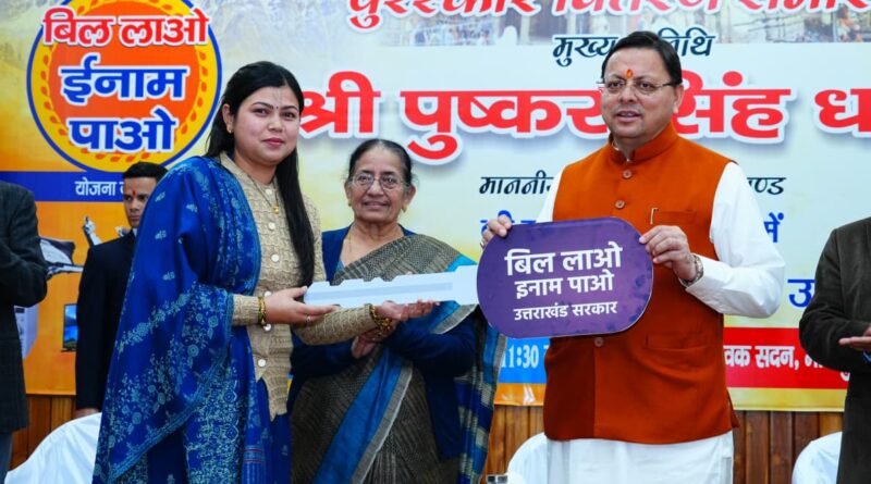 Read Moreमुख्यमंत्री पुष्कर सिंह धामी ने किया ’’बिल लाओ-इनाम पाओ’’ योजना के विजेताओं को पुरस्कृत कुल 1888 विजेताओं ने जीते योजना