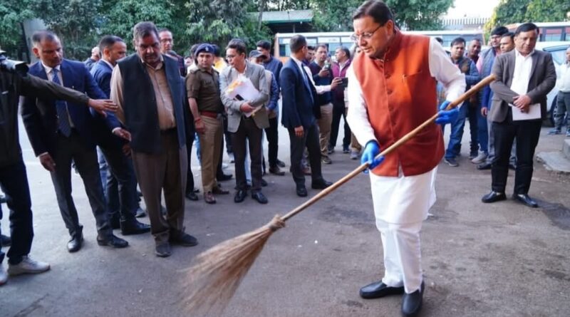देहरादून आईएसबीटी में फैली गंदगी देख सीएम धामी हुए नाराज, खुद झाड़ू उठाकर किया साफ