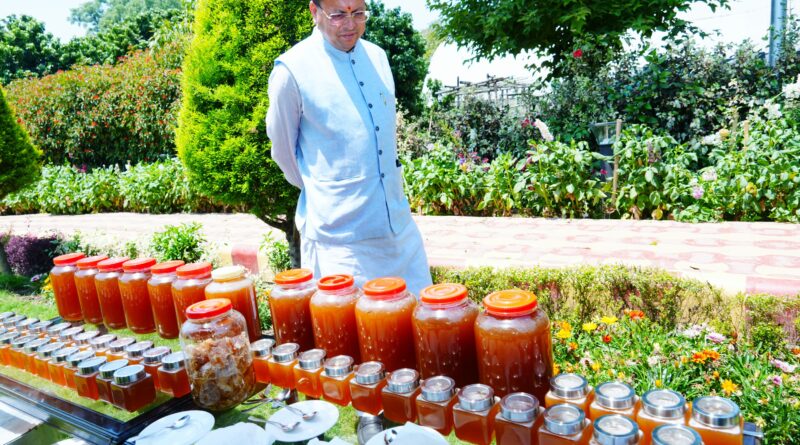 CM धामी ने मुख्यमंत्री आवास परिसर में शहद निकालने की प्रक्रिया का अवलोकन किया