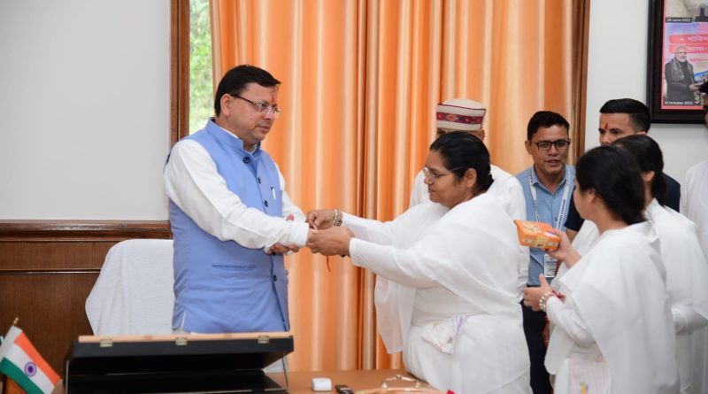 ब्रह्मकुमारी बहनों ने विधानसभा गैरसैंण (भराड़ीसैंण) में मुख्यमंत्री धामी की कलाई में बांधा रक्षा सूत्र