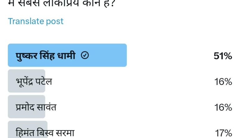 -मुख्यमंत्री धामी की लोकप्रियता पर सबसे ज्यादा 51.1 फीसद लोगों ने लगाई मुहर