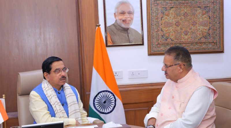 नई दिल्ली में केंद्रीय मंत्री प्रह्लाद जोशी से भेंट करते कृषि मंत्री गणेश जोशी