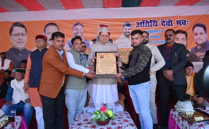 टिहरी।मुख्यमंत्री पुष्कर सिंह धामी ने मंगलवार को रा.इ.कॉ. गरखेत नैनबाग टिहरी गढ़वाल पहुंचकर जौनपुर क्रीड़ा एवं सांस्कृतिक विकास महोत्सव में प्रतिभाग किया। समिति द्वारा मुख्यमंत्री का जोरदार स्वागत करते हुए कोट एवं टोपी पहनाकर सम्मान किया गया।