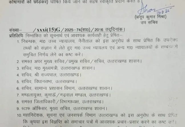 देहरादून। उत्तराखंड सरकार ने शुक्रवार को एक आदेश जारी किया है। पर्वतीय होली को लेकर 15 मार्च यानी आज सार्वजनिक अवकाश घोषित किया गया है। जारी अधिसूचना में कहा गया है कि 15 मार्च को पर्वतीय होली को लेकर प्रदेश के समस्त शासकीय, अशासकीय कार्यालयों, शैक्षणिक शासकीय, अशासकीय कार्यालयों, शैक्षणिक संस्थानों औरविद्यालयों में सार्वजनिक अवकाश रहेगा। लेकिन बैंक खुले रहेंगे।