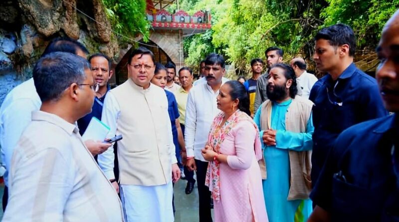 आपदा प्रभावित क्षेत्र में नुकसान का स्थलीय निरीक्षण करने पहुंचे मुख्यमन्त्री धामी